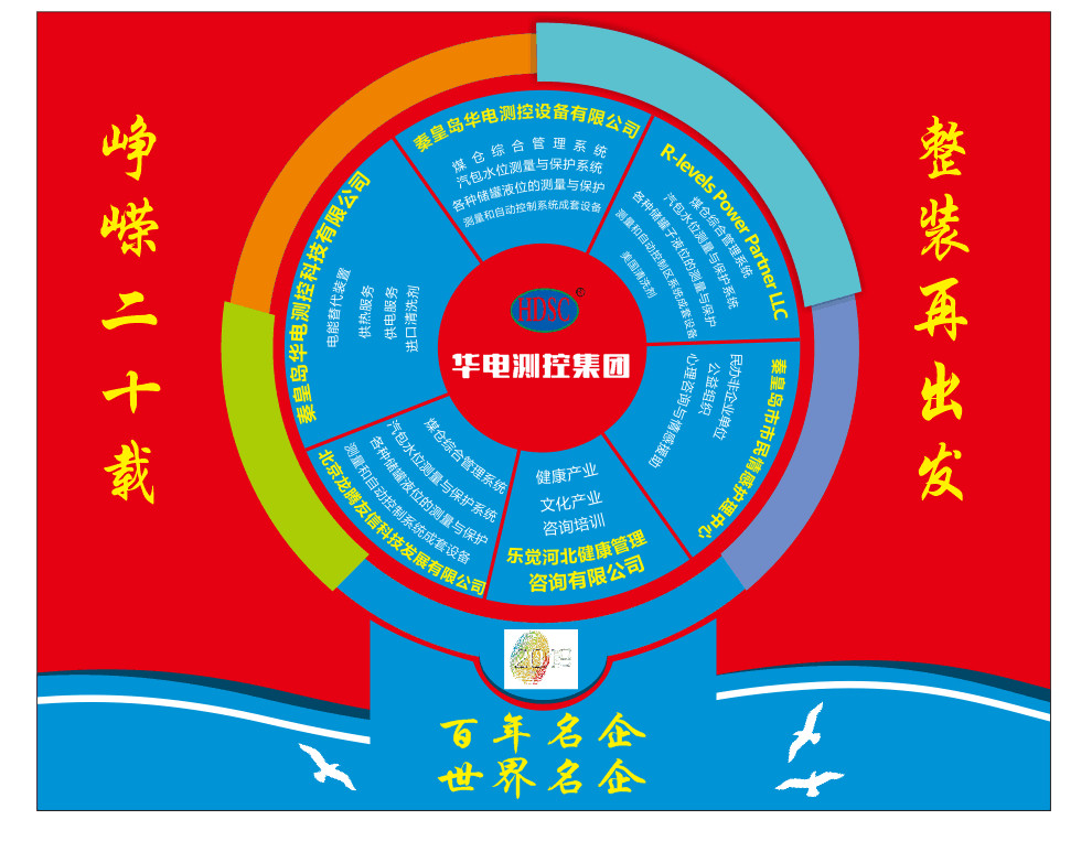 目前,以秦皇島華電測(cè)控設(shè)備有限公司為本部,已成立了秦皇島華電測(cè)控科技有限公司、北京龍騰友信科技發(fā)展有限公司、非營(yíng)利性公益機(jī)構(gòu)秦皇島市市民情感護(hù)理中心、位于美國(guó)休斯頓的R-Levels Power Partner Limited Liability Company以及倡導(dǎo)“生機(jī)健康、無(wú)藥醫(yī)療”理念的樂(lè)覺(jué)河北健康管理咨詢有限公司。集團(tuán)公司揭牌儀式將于2019年1月19日與公司20周年華誕盛典同時(shí)啟動(dòng)!