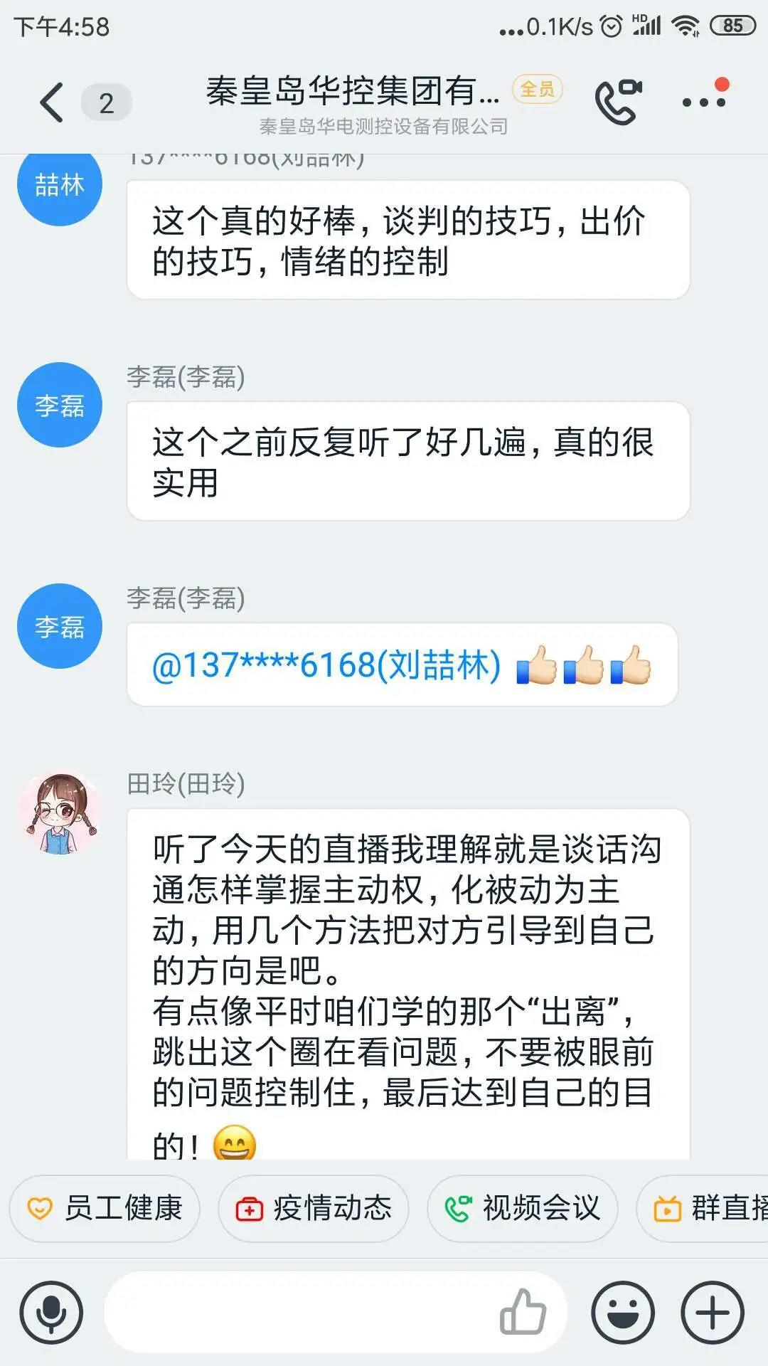 線上充電,勤修內(nèi)功,防疫不忘學(xué)習(xí)。線上培訓(xùn)課程豐富,體驗(yàn)感強(qiáng),有收獲,有提升,線上沒聽懂的還可以觀看“直播回放”反復(fù)學(xué)習(xí),溫故而知新,成效明顯。在人力資源部的引領(lǐng)下,大家線上積極交流培訓(xùn)感悟。