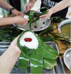 活動(dòng)在職工食堂開(kāi)展。2020年6月23日早上九點(diǎn)左右,同事們就歡聚一堂,開(kāi)始其樂(lè)融融地包起粽子。你一個(gè)我一個(gè)就這樣大家邊學(xué)邊包,大小不一,形狀各式各樣,大家看到自己包的粽子都笑逐顏開(kāi)。粽子看著不大,樣式簡(jiǎn)單,然而若想包好一個(gè)美觀的粽子,實(shí)則不易。不僅餡兒料適宜,還需要力度正好,才能保證不漏餡兒。同事們邊包邊相互討論學(xué)習(xí),甚是愉快。