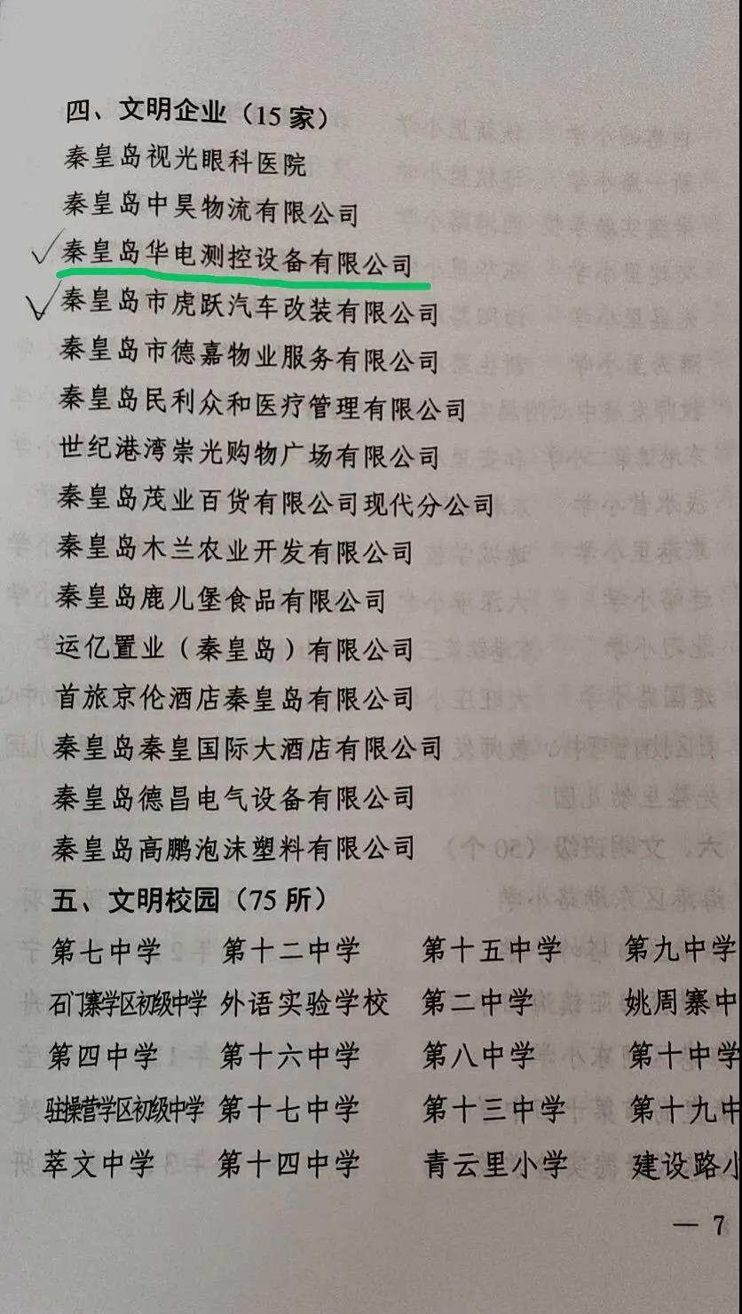 20204月,中共秦皇島市海港區(qū)委、區(qū)政府組織申報2019年度文明單位和文明個人,經(jīng)過推薦評審,近日獲悉華電測控榮獲文明單位稱號。