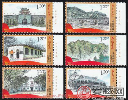 為迎接2012年中國(guó)共產(chǎn)黨第十八次全國(guó)人民代表大會(huì)的召開,配合紅色旅游,中國(guó)郵政集團(tuán)公司于2012年6月30日發(fā)行了《紅色足跡》特種郵票一套。2012年6月30日,“紅色足跡”特種郵票首發(fā)式在井岡山舉行。2012-14《紅色足跡》特種郵票?小版張一共有六枚郵票組成,分別是井岡山、瑞金、遵義、會(huì)寧、延安、西柏坡六處老革命根據(jù)地的圖案,面值全部是1.20元,設(shè)計(jì)者是巧妙的運(yùn)用了這種鋼筆淡彩的手法,將每一處根據(jù)地完美的展現(xiàn),并且還是小版張郵票,無論是從設(shè)計(jì)、題材、形式方面來看,這都是一套極有價(jià)值的郵票,所以收藏者一直對(duì)它的熱度沒有減少。