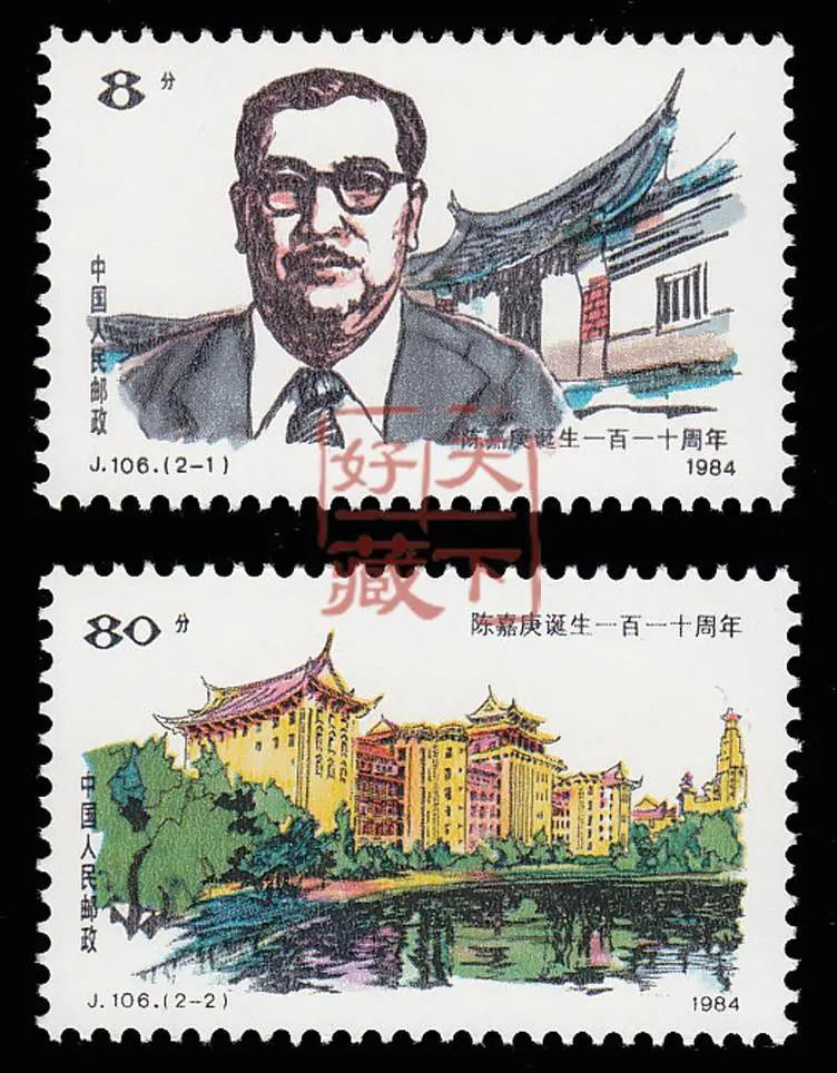 1984年10月21日,我國郵電部為了表達中國人民對著名愛國僑領(lǐng)的深深懷念,發(fā)行了一套陳嘉庚誕辰110周年紀(jì)念郵票。此套郵票共2枚,由我國著名郵票設(shè)計家黃里設(shè)計。