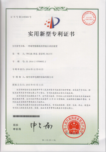 公司于2014年12月03日提交的“一種球型攝像機(jī)的智能自清洗裝置”專利已被中華人民共和國(guó)國(guó)家知識(shí)產(chǎn)權(quán)局頒發(fā)專利證書(shū)。