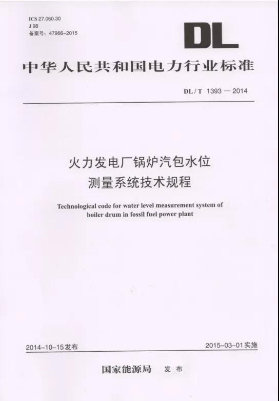 2021年12月22日,根據(jù)《中華人民共和國標(biāo)準(zhǔn)化法》、《能源標(biāo)準(zhǔn)化管理辦法》,國家能源局批準(zhǔn)包括DL/T 1393-2014《火力發(fā)電廠鍋爐汽包水位測量系統(tǒng)技術(shù)規(guī)程》,行業(yè)標(biāo)準(zhǔn)外文名稱:Technological code for water level measurement of boiler drum in fossil fuel power plant,在內(nèi)的25項(xiàng)能源行業(yè)標(biāo)準(zhǔn)外文版予以發(fā)布。