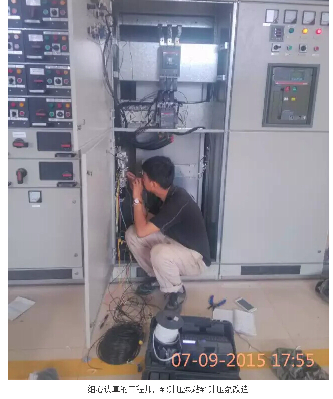 同時在同一地點的另一施工現(xiàn)場,在公司總工程師、工程部經(jīng)理姜崇明領導下,水廠的無人化值守程控部分改造緊鑼密鼓的推進。#2升壓泵站的變頻自動供水、節(jié)水泵站遠程自動控制、二級泵站供水閥自動、全廠排污坑自動排水、取水泵站取水泵和液控閥聯(lián)動自動供水、全廠視頻監(jiān)控系統(tǒng)等等,一個又一個的技術(shù)難點被攻克,一個又一個的系統(tǒng)被優(yōu)化,得到的是客戶滿意的微笑,收獲得是公司員工的成長。
