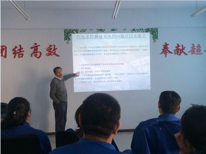 2016年1月5日上午,秦皇島華電測控設備有限公司總經理劉吉川先生親赴華電能源佳木斯熱電廠,為“熱工分廠”技術人員組織了一場關于“鍋爐汽包水位計測量”的授課。授課內容涵蓋了“汽包水位測量系統(tǒng)改造必要性、汽包水位測量系統(tǒng)的問題及技術難點、如何解決、改造效果”等四個方面。作為汽包水位測量行業(yè)的專家,劉總的授課受到了熱工人員的一致認可。