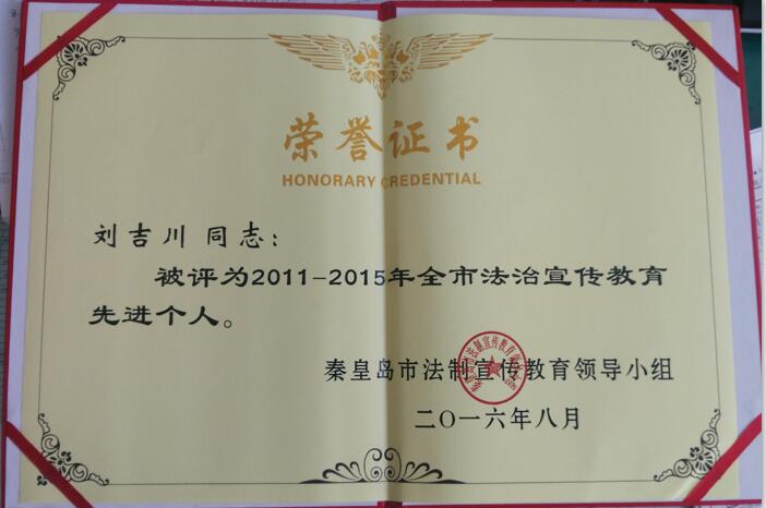 【企業(yè)要聞】喜訊: 華電測(cè)控總經(jīng)理劉吉川先生被評(píng)為2011-2015年全市法治宣傳教育先進(jìn)個(gè)人