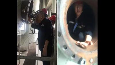 2018年7月10號(hào),我公司對(duì)大唐某電廠改造后的水位計(jì)進(jìn)行了水線測(cè)量,結(jié)果顯示我公司水位計(jì)能真實(shí)準(zhǔn)確地反映汽包內(nèi)水位情況。 汽包兩端內(nèi)壁運(yùn)行水線與水位計(jì)零線對(duì)比圖 技術(shù)人員現(xiàn)場(chǎng)測(cè)量 2017年6月,我公司More