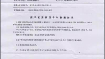 新春臨近,捷報(bào)頻傳! 公司于2014年12月03日提交的“一種球型攝像機(jī)的智能自清洗裝置”專利已被中華人民共和國(guó)國(guó)家知識(shí)產(chǎn)權(quán)局授權(quán)實(shí)用新型專利權(quán)。 本實(shí)用新型公開了一種球型攝像機(jī)的智能自清洗裝置,屬More