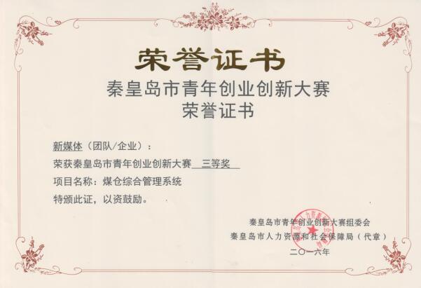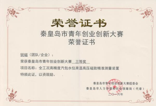2016年5月,公司組建了“銳磁”和“新媒體”兩個(gè)團(tuán)隊(duì),參加秦皇島市青年創(chuàng)業(yè)創(chuàng)新大賽,其中“銳磁”團(tuán)隊(duì)的參賽項(xiàng)目為《全工況高精度汽包水位高溫高壓磁致精準(zhǔn)測(cè)量裝置》,“新媒體”團(tuán)隊(duì)的參賽項(xiàng)目為《煤倉(cāng)綜合管理系統(tǒng)》,經(jīng)過(guò)兩個(gè)團(tuán)隊(duì)的不斷開(kāi)拓創(chuàng)新,兩個(gè)項(xiàng)目先后在市級(jí)、省級(jí)及國(guó)家級(jí)的比賽中連獲殊榮?!度r高精度汽包水位高溫高壓磁致精準(zhǔn)測(cè)量裝置》獲得秦皇島市青年創(chuàng)業(yè)創(chuàng)新大賽三等獎(jiǎng),第二屆“中國(guó)創(chuàng)翼”青年創(chuàng)業(yè)創(chuàng)新大賽高端設(shè)備制造類項(xiàng)“金翼獎(jiǎng)”;《煤倉(cāng)綜合管理系統(tǒng)》獲得秦皇島市青年創(chuàng)業(yè)創(chuàng)新大賽三等獎(jiǎng),河北省青年創(chuàng)業(yè)創(chuàng)新大賽三等獎(jiǎng),第二屆“中國(guó)創(chuàng)翼”青年創(chuàng)業(yè)創(chuàng)新大賽高端設(shè)備制造類項(xiàng)“銀翼獎(jiǎng)”。