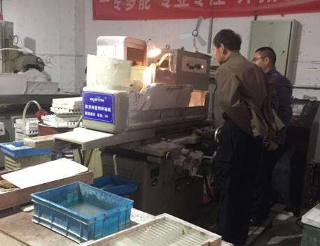 質(zhì)檢部劉經(jīng)理和該公司總經(jīng)理在粗加工車間交流玻璃加工細(xì)節(jié)