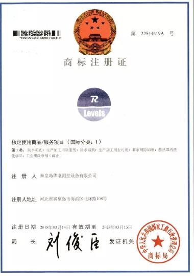 2017年1月,秦皇島華電測(cè)控設(shè)備有限公司正式將美國(guó)授權(quán)的rlevels商標(biāo)向中國(guó)國(guó)家商標(biāo)局提交申請(qǐng)注冊(cè)文件,經(jīng)商標(biāo)局嚴(yán)謹(jǐn)審核認(rèn)證,近日獲得商標(biāo)注冊(cè)證:第22544618A,第1類,有效期為2018年03月14日至2028年03月13日。該商標(biāo)的注冊(cè)成功,標(biāo)志著公司已經(jīng)擁了41項(xiàng)自主知識(shí)產(chǎn)權(quán)。 秦皇島華電測(cè)控設(shè)備有限公司以誠(chéng)信立業(yè),不斷開(kāi)拓創(chuàng)新,經(jīng)過(guò)近二十年的發(fā)展,取得了多項(xiàng)榮譽(yù),曾先后被授予“河北省高新技術(shù)企業(yè)”、“河北省著名商標(biāo)”、“河北省科技型中小企業(yè)”、“河北省省級(jí)信用優(yōu)良企業(yè)”、“河北省誠(chéng)信中小企業(yè)”、“河北省中小企業(yè)技術(shù)創(chuàng)新示范企業(yè)”、“河北省對(duì)標(biāo)示范企業(yè)”、“河北省創(chuàng)新驅(qū)動(dòng)發(fā)展示范企業(yè)”、“河北省企業(yè)文化建設(shè)示范單位”等榮譽(yù)稱號(hào)。 管理部 田秀芬報(bào)道