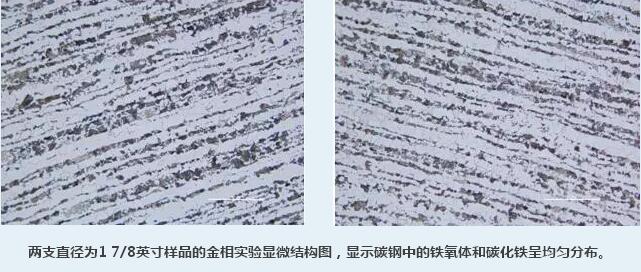今年4月份,華電測控向美國電力公司交付了兩套高精度無盲區(qū)云母水位計,美國電力公司要求所有產(chǎn)品均應(yīng)符合SA106 Gr. B標準,安裝前進行了取樣,分別截取了兩支直徑為1 7/8英寸的樣品,進行了金相實驗和化學成分檢測;一支直徑為1英寸的樣品,進行化學成分檢測。