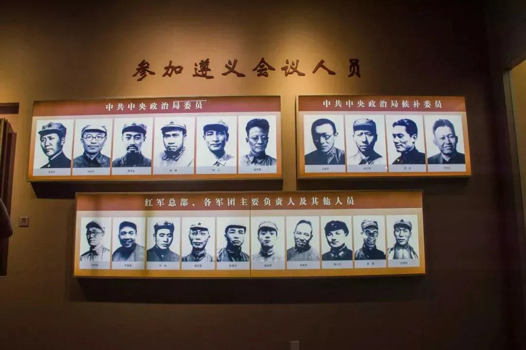 我曾經(jīng)參觀過(guò)遵義會(huì)議會(huì)址。在遵義會(huì)議紀(jì)念館門前的大門正上方,掛著一塊黑漆金匾,上面“遵義會(huì)議會(huì)址”六個(gè)金光閃閃的大字俏俊飄逸、豪放酣暢,這是1964年由毛澤東親筆題寫,同時(shí)也是毛澤東一生中為中國(guó)革命舊址留下的唯一一幅墨寶。遵義會(huì)議會(huì)議室里并排懸掛著參加會(huì)議的8位政治局委員的照片,他們是:毛澤東、周恩來(lái)、洛甫(張聞天)、博古(秦邦憲)、陳云、劉少奇、朱德、王稼祥。
