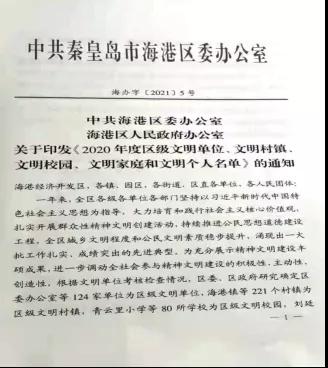 2021年,中共秦皇島市海港區(qū)委、區(qū)政府組織申報(bào)年度文明單位和文明個(gè)人等,經(jīng)過(guò)推薦、申報(bào)、評(píng)審,近期獲悉秦皇島華電測(cè)控設(shè)備有限公司連續(xù)兩年榮獲海港區(qū)文明單位稱號(hào),公司黨支部書記、副總經(jīng)理劉喆林同志被評(píng)為海港區(qū)文明職工。