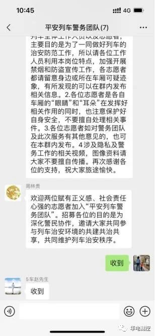 2022年10月14日,他踏上了開往浙江的高鐵。因疫情高鐵人員安排緊張,高鐵上工作人員特向乘車旅客發(fā)出邀請,希望有正義感、社會責任心強的志愿者共同參與列車治安環(huán)境的共建共治共享,共同維護列車治安秩序。作為黨員的他第一時間響應號召,加入“平安列車警務團隊”,成為了一名行治安聯(lián)防隊員。列車行駛過程中,他同其他志愿者發(fā)揮著“消息樹”的作用,實時將列車情況反饋給乘警。