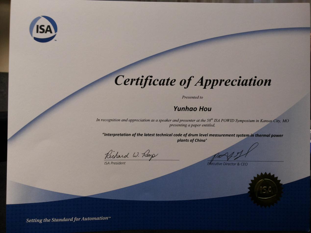 這次是我公司第三次受邀參會,國貿部副經(jīng)理、高級工程師于勝利和副總工程師崔明思代表公司參會。新的汽包水位測量技術行業(yè)標準得到了與會專家的高度重視和認可,公司在汽包水位測量技術領域取得的成就得到了美國標準管理局ISA和電力行業(yè)專家的肯定和贊譽。華電測控對世界電力行業(yè)做出了突出的貢獻,在標準層面引領世界電力行業(yè)向更安全,更可靠發(fā)展。