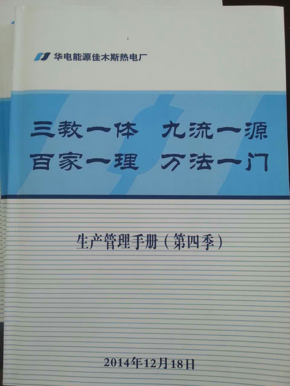 “三教一體,九流一源。百家一理,萬法一門”。在與“佳熱”領(lǐng)導(dǎo)的交流中我們了解到,這一年半以來,“佳熱人”大力弘揚(yáng)和踐行傳統(tǒng)文化與教練技術(shù),目前改版的《生產(chǎn)管理手冊》已經(jīng)發(fā)行了九期?!暗馈迸c“術(shù)”的融會貫通,為“佳熱人”匯聚了正能量,負(fù)責(zé)任、懂感恩的心態(tài)植入每個“佳熱人”的心中。正是如此,“佳熱”在今年榮獲了全國五一勞動獎?wù)?,榮獲了機(jī)組全國評比第一名的好成績!“佳熱”人的精神受到了集團(tuán)公司的高度認(rèn)可。