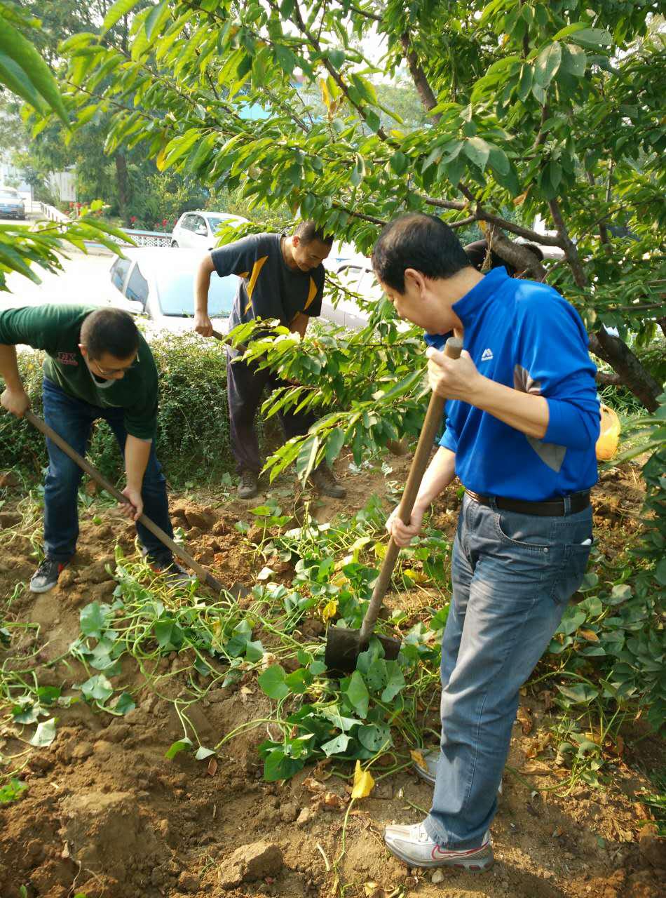 在公司黨支部的感召下,公司的黨員和入黨積極分子均熱情地投身于本次活動中?;▔镉泻芏嘁呀?jīng)成熟等待收獲的地瓜。為了能讓大家在午餐時品嘗到新鮮美味的地瓜,在黨支部書記劉劍鋒同志和各位黨小組組長的感召和組織下,黨員和積極分子們義務(wù)地為大家挖地瓜。很多年輕的同志不懂得如何操作,老員工們紛紛向他們講解如何拔苗、鏟土、采摘。與其說是一次義務(wù)勞動,不如說是一種充滿歡聲笑語的秋收活動,年輕的黨員們逐漸學(xué)會了怎么收地瓜,老黨員們紛紛揮汗如雨。不到一個小時,一整園的地瓜都順利采摘完成。活動后,大家主動清理了花壇中的地瓜秧,并把收獲的地瓜送到蒸箱為大家的午餐加菜。
