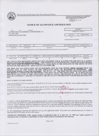 好消息:公司于2014年7月向美國(guó)提交的“汽包水位磁致液位計(jì)”發(fā)明專(zhuān)利申請(qǐng),經(jīng)過(guò)美國(guó)知識(shí)產(chǎn)權(quán)局嚴(yán)謹(jǐn)認(rèn)真的審查,已經(jīng)授予了發(fā)明專(zhuān)利權(quán)。這是我公司獲得的第35項(xiàng)自主知識(shí)產(chǎn)權(quán)。